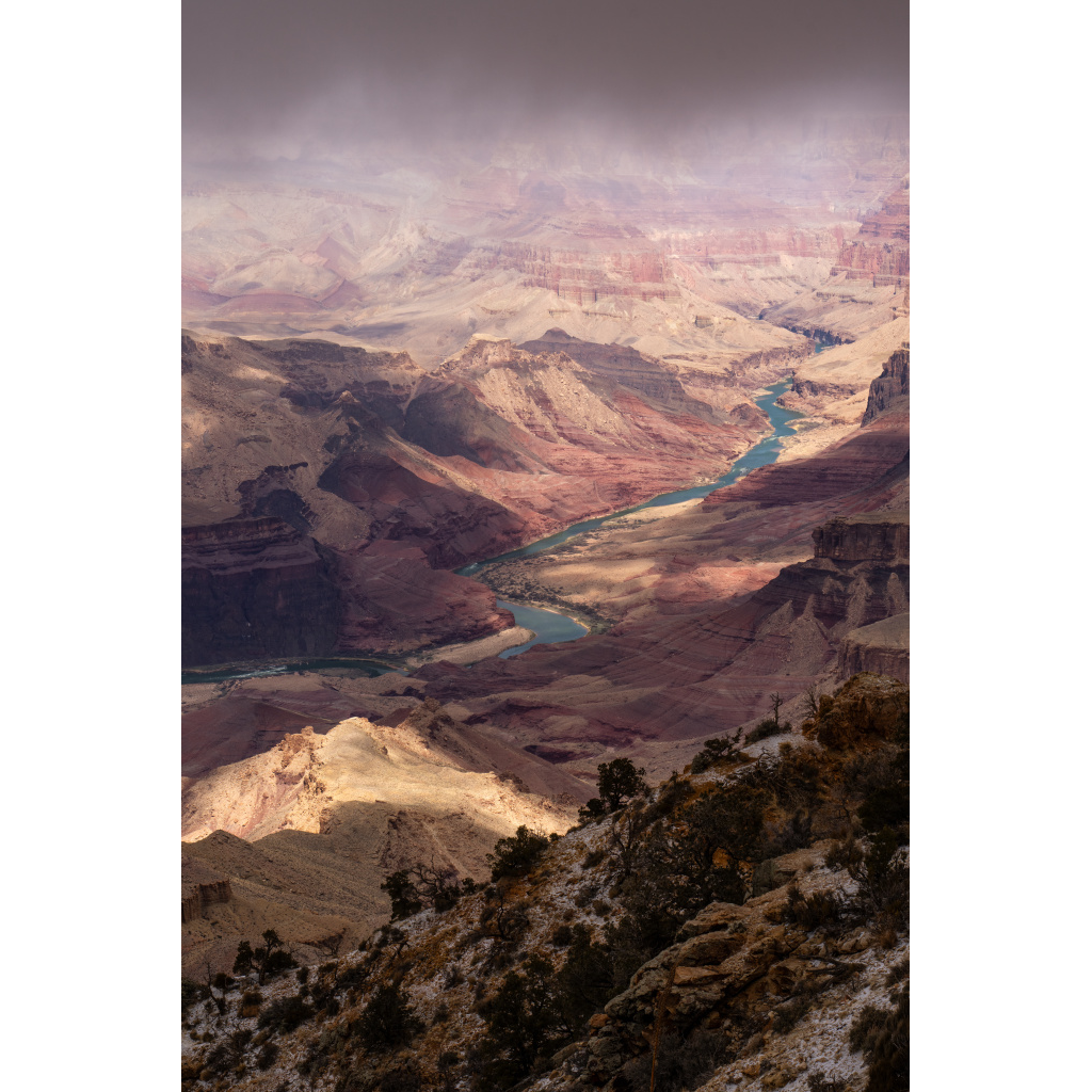 Bring the serene majesty of the Grand Canyon into your space with this fine art print. Mist drifts across layered canyon walls, softening the rugged landscape into a peaceful, timeless scene. This piece captures both depth and subtle tonal shifts, making it an ideal focal point for your living room, office, or any space in need of natural beauty and calm.